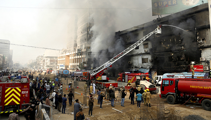 فائر بریگیڈ حکام کے مطابق عمارت میں آگ رات گئے لگی، آگ کو تیسرے درجے کی قرار دیا گیا، گل پلازا کے قریب عقبی حصہ گرنے سے ایک فائر فائٹر دب کر جاں بحق ہوا، شہر بھر سے 20 سے زائد فائر بریگیڈ کی گاڑیاں آپریشن میں مصروف ہیں، عمارت کے باہر دو اسنارکل بھی آگ پر قابو پانے میں مصروف ہیں۔