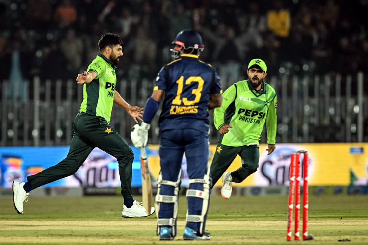 پاکستان کی جانب سے حارث رئوف نے 3،نسیم شاہ اور فہیم اشرف نے دو دو کھلاڑیوں کو آئوٹ کیا۔