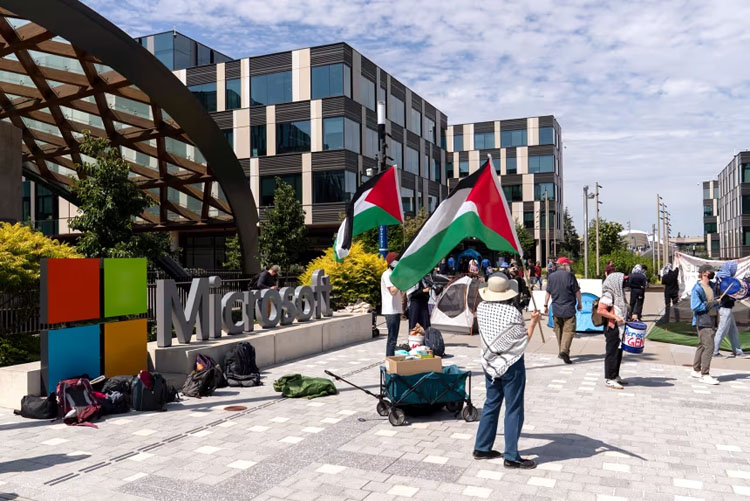 ریڈمنڈ، واشنگٹن میں مائیکروسافٹ (MSFT) کیمپس میں مسلسل دو دن کے احتجاج نے ٹیک دیو سے مطالبہ کیا کہ وہ اسرائیل کے ساتھ اپنے کاروباری تعلقات فوری طور پر منقطع کرے۔