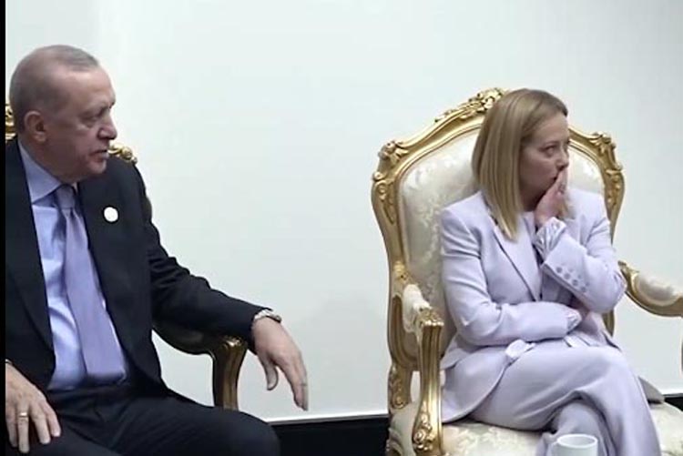 ترک صدر اردوان اور میلونی کی یہ گفتگو فرانسیسی صدر ایمانوئل میکرون کی موجودگی میں ہوئی، جنہوں نے اطالوی وزیراعظم کے جانے کے بعد مسکراتے ہوئے اردوان سے کہا:“یہ ناممکن ہے!”