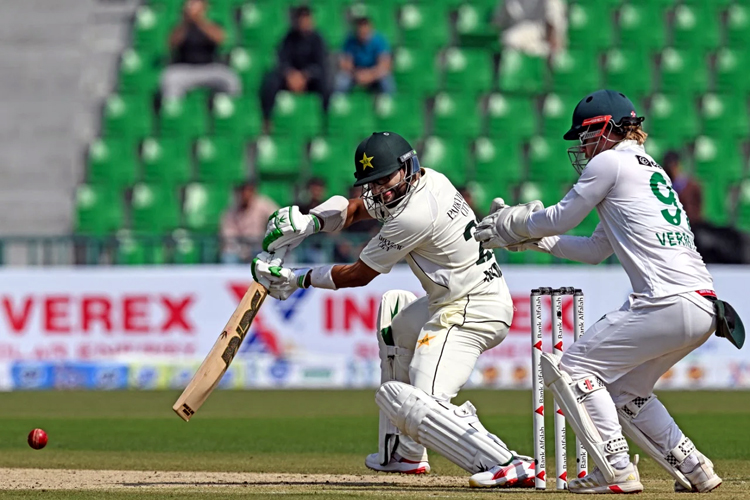 پاکستان کی پہلی وکٹ عبداللہ شفیق کی صورت میں جلد ہی گر گئی ۔ عبداللہ شفیق محض دو رنز کے مہمان ثابت ہوئے ۔کپتان شان مسعود اور اوپنر بلے باز امام الحق کا ذمہ دارانہ کھیل کا مظاہرہ کیا اور ٹیم کا سکور 163رنز تک پہنچانے میں کامیاب ہو گئے ۔ تاہم کپتان شان مسعود 76رنز بنا کر آئوٹ ہو گئے ۔
