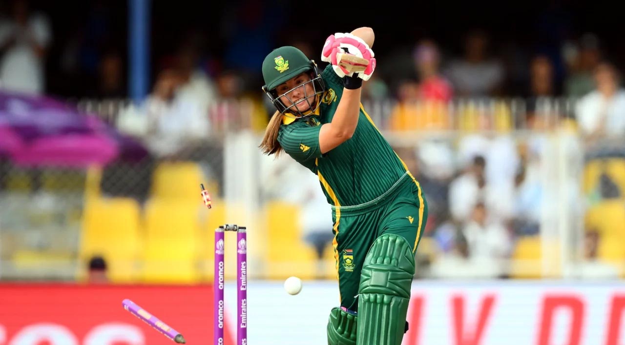 تفصیلات کے مطابق بھارت کے شہرگوہاٹی میں انگلش ٹیم نے ٹاس جیت کر پہلے فیلڈنگ کا فیصلہ کیا ۔جنوبی افریقہ کپتان وولورڈز آئوٹ ہونیوالی کھلاڑی تھیں جنہوں نے محض 5رنز سکور کئے ۔دوسری وکٹ ٹزمین برٹز کی گری وہ بھی 5رنز ہی سکور کر سکیں ۔تیسری آئوٹ ہونیوالی کھلاڑی سیون لوز تھیں جنہوں نے صرف 2رنز ہی بنائے ۔ چوتھی وکٹ 19رنز کے سکور پر گری ۔مزینی کاپ 4رنز کی مہمان ثابت ہوئیں۔ پانچویں آئوٹ ہونیوالی کھلاڑی انیکا بوش تھیں وہ بھی صفر 6رنز بنا سکیں ۔چول ٹریون چھٹی آئوٹ ہونیوالی کھلاڑی تھیں جو 2رنز ہی بنا سکیں ۔ ساتویں آئوٹ ہونیوالی کھلاڑی نیڈین ڈی کلارک تھیں وہ بھی ڈبل فیگر میں داخل نہ ہوسکیں اور 3رنز ہی بنا سکیں ۔