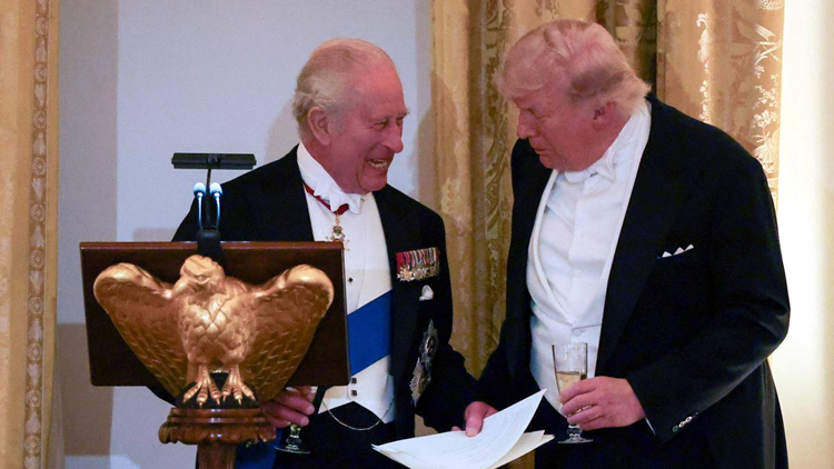 امریکا نے ایران کو فوجی شکست دی،برطانوی بادشاہ چارلس کے اعزاز میں عشایئے سے خطاب میں ڈونلڈ ٹرمپ نے کہا برطانیہ سے تاریخی رشتہ اجاگر کرنا فطری ہے،یہ تعلق آج بھی مضبوط ہے ۔