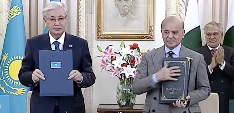 دونوں ممالک کے درمیان مختلف معاہدوں کی مفاہمتی یادداشتوں پر دستخط کی تقریب میں خطاب کرتے ہوئے وزیراعظم شہباز شریف کا کہنا تھا کہ اپنے بھائی صدر قازقستان اور ان کے وفد کا خیر مقدم کرتے ہیں، دورہ دونوں ممالک کے تعلقات کونئی جہت دینے کیلئے بہت اہم ہے، قازقستان کے کسی صدر نے 23 سال بعد پاکستان کا دورہ کیا۔